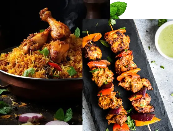 Our menu celebrates the vibrant spices, aromatic herbs, and traditional cooking techniques that make Indian cuisine a global favorite. Whether you’re craving the smoky flavors of our tandoori dishes, the irresistible taste of Hyderabadi biryani, or the comforting richness of our curries, we have something for every palate.